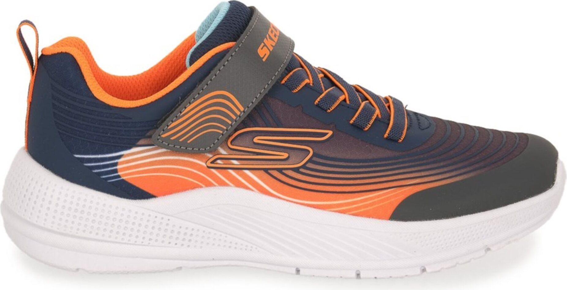 Dieser farbenfrohe Kinder Sneaker Microspec Advance von Skechers begeistert uns für die neue Herbst Saison.Er wurde aus Textil Mesh in Blau mit einem haptischen Print in Schwarz und Neon Grün verziert. +