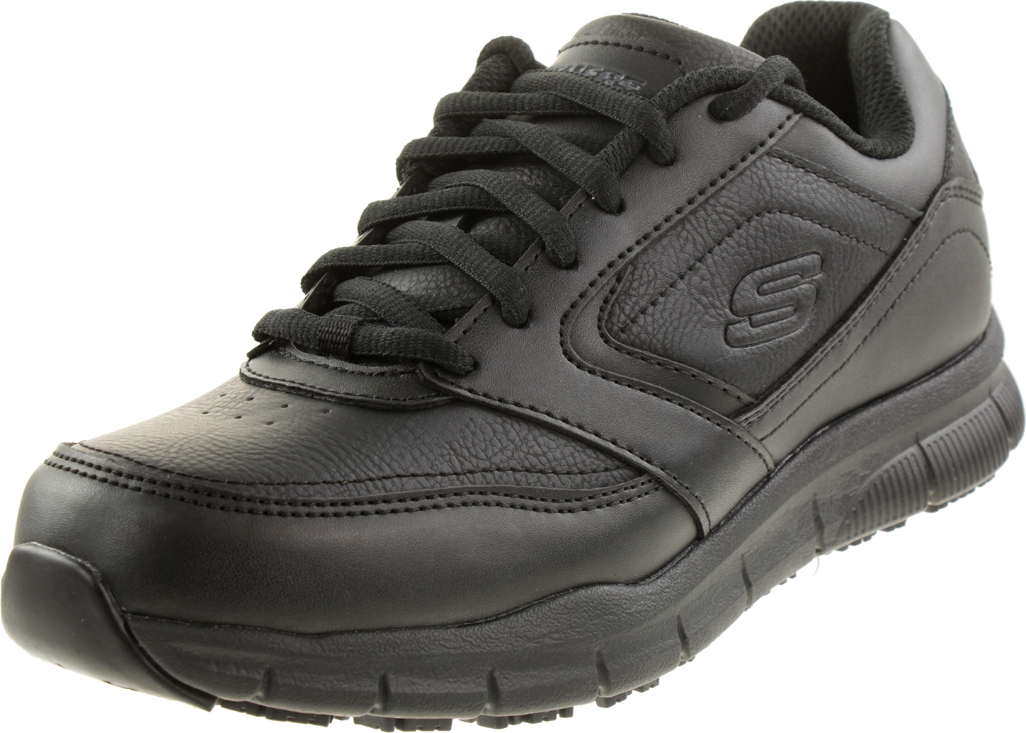 Der SKECHERS Work Relaxed Fit : Nampa SR ist ein bequemer Freizeitschuh aus strukturiertem Glattleder mit Schnürsenkeln, Nähten und einer SKECHERS Memory Foam-Einlegesohle, der Ihnen endlosen Komfort und Selbstvertrauen bietet. +