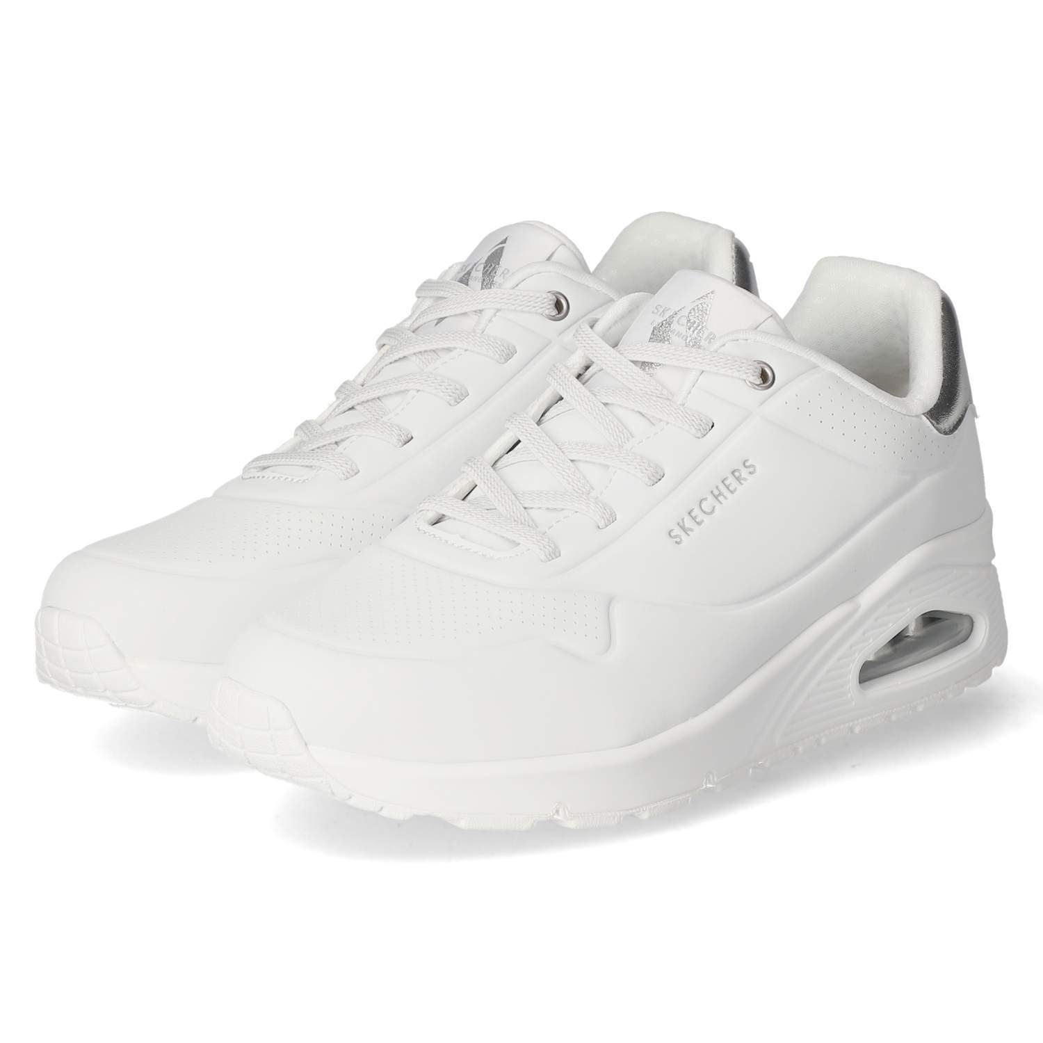 Die profilierte Laufsohle aus Gummi bietet zudem einen sicheren Stand und sorgt dafür, dass Sie auch auf glatten Untergründen immer gut unterwegs sind. Egal ob beim Stadtbummel, im Büro oder beim gemütlichen Spaziergang - mit den Skechers UNO SHIMMER AWAY Sneakern sind Sie immer perfekt gestylt! Gönnen Sie sich diesen modischen Freizeitschuh und lassen Sie sich von seinem besonderen Charme verzaubern.