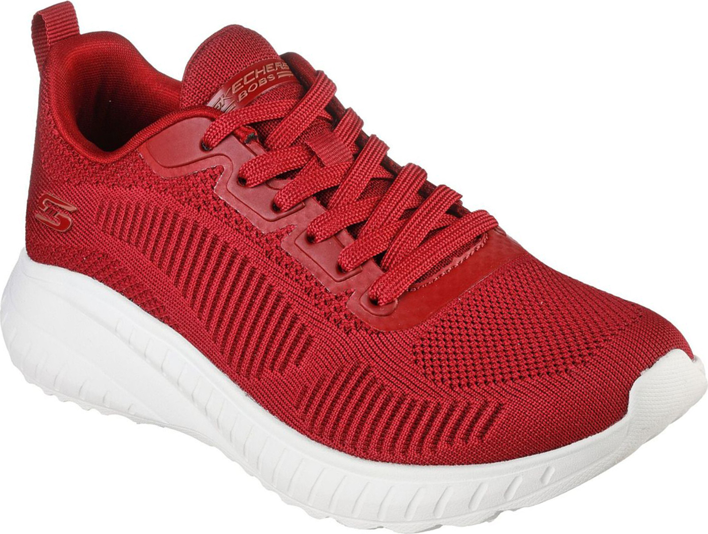 Entfesseln Sie Ihren sportlichen Stil mit dem Skechers Bobs Squad Chaos - FACE OFF Sneaker in einem auffälligen Rotton! Dieser Schuh ist die perfekte Kombination aus modischem Design und erstklassigem Komfort. +