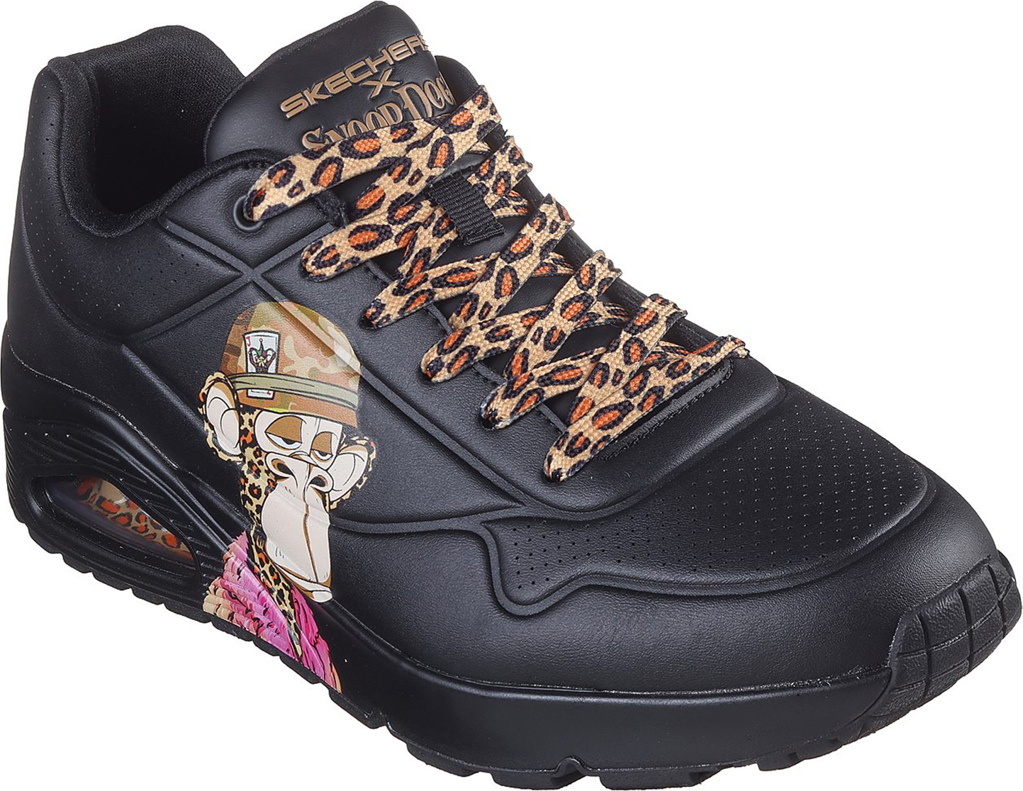 Bombay™-Sammlerbox.Aus der Skechers x Snoop Dogg Kollaboration mit Snoops Sammlerfigur Dr. Bombay NFTSkech-Air sichtbare Airbag-Zwischensohle mit Leopardenmuster-DetailZweite Schnürsenkel - Leopardenmuster und körperfarbene SchnürsenkelExklusive Sammler-Edition-VerpackungPerforiertes Obermaterial aus synthetischem Durabuck mit Dr.