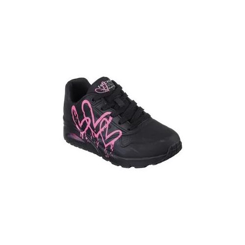 Skechers UNO DRIPPING IN LOVE Sneaker mit Herzen-Graffity-Print, Freizeitschuh, Halbschuh, Schnürschuh (schwarz)