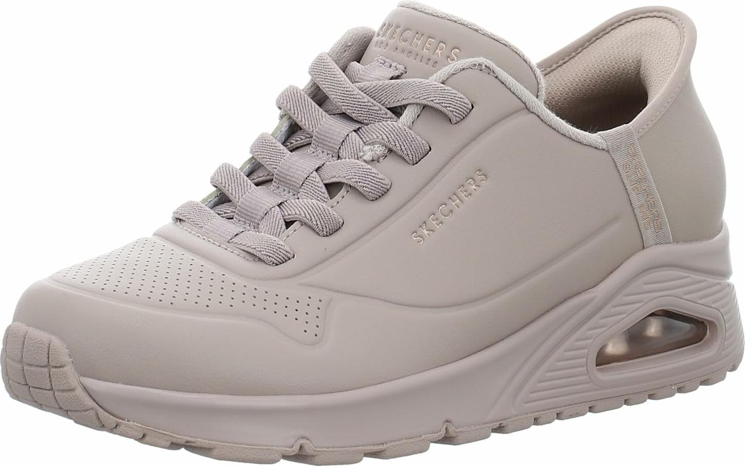 Verleihen Sie Ihrem Schuhschrank einen Schub an Komfort und Stil mit dem Skechers Uno - Easy Air Slipper in Beige.