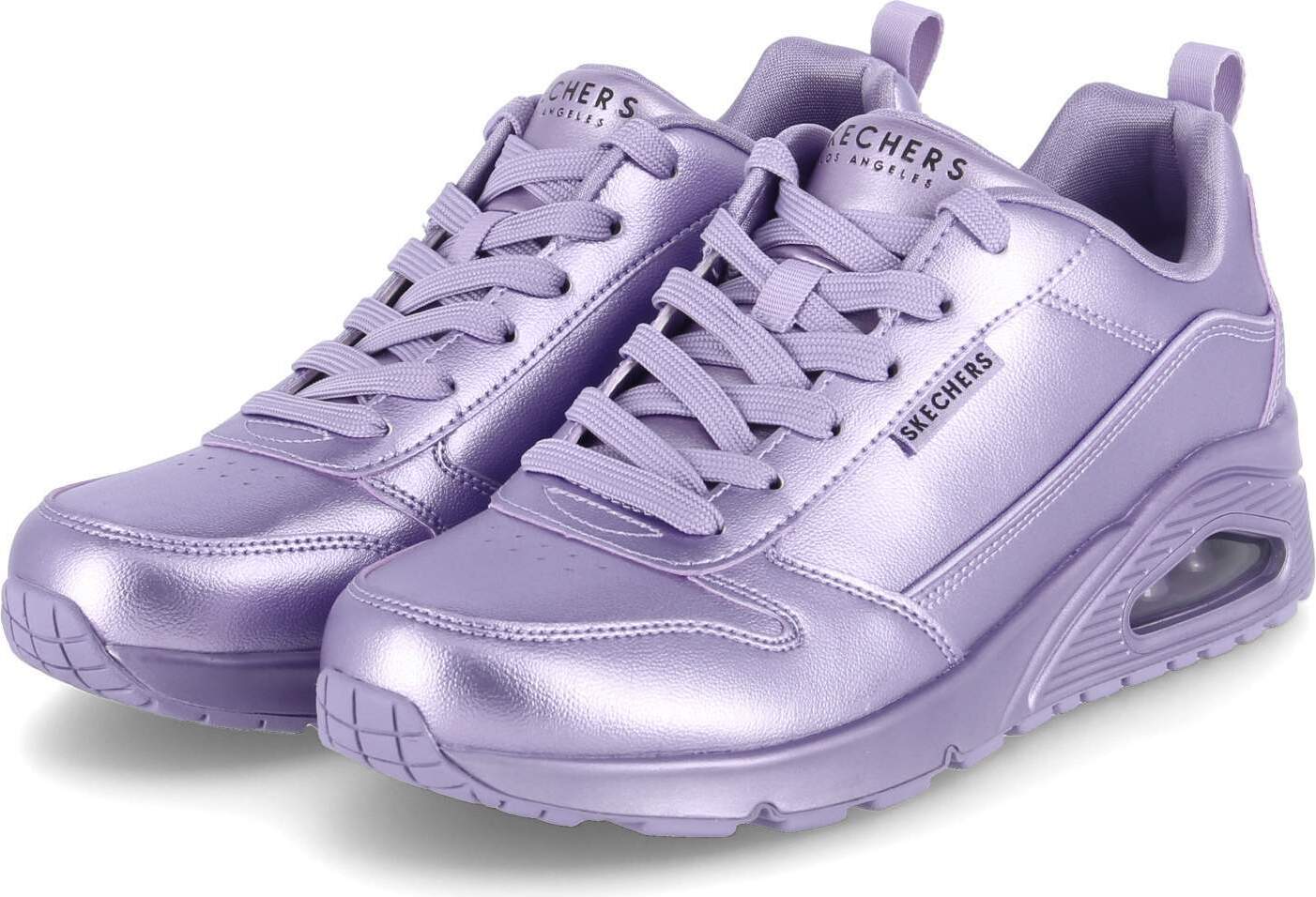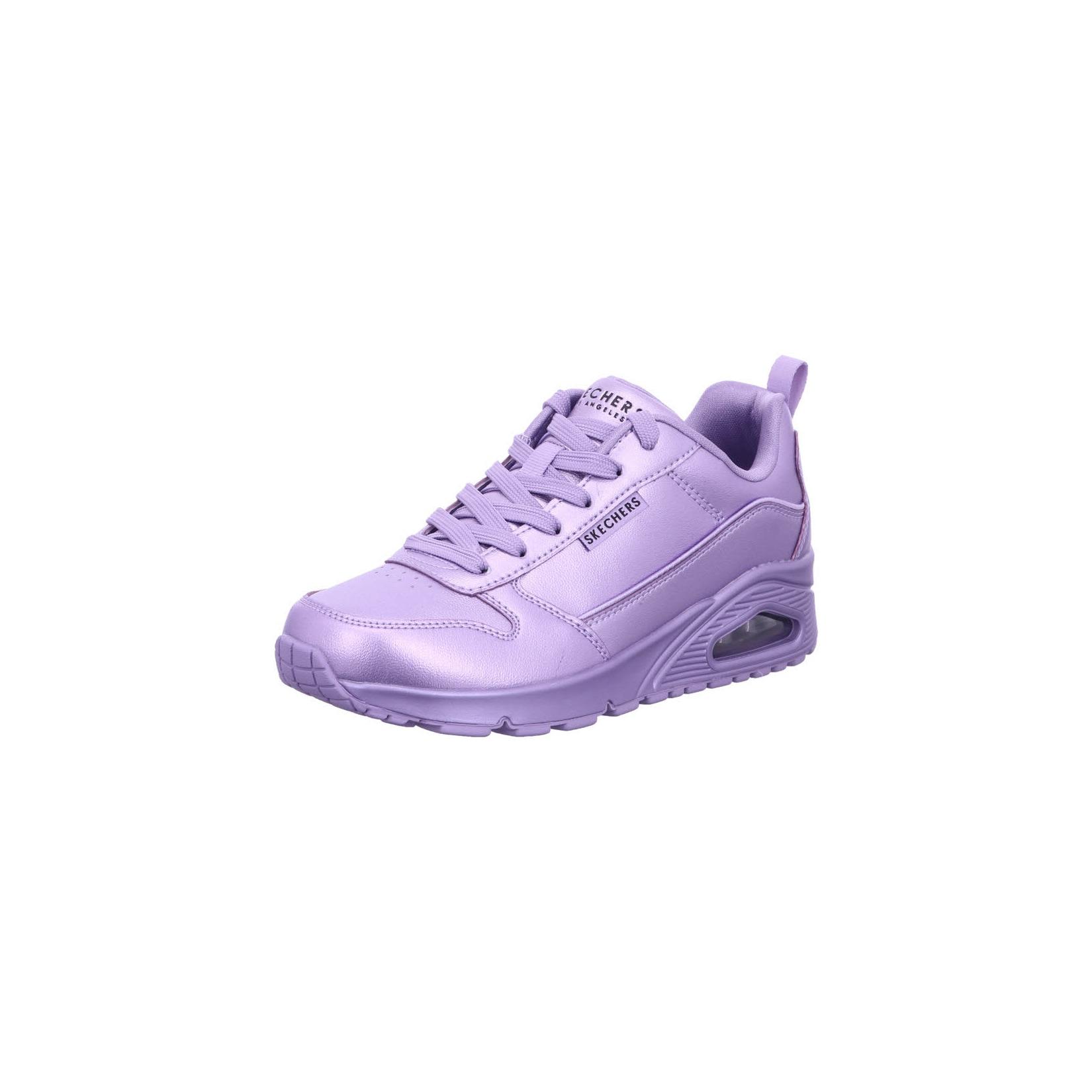 Der Damen Sneaker Uno Galactic Gal von Skechers Street, sorgt für einen garantiert glänzenden Auftritt.Dafür sorgt das Obermaterial aus Kunstleder in Pastell Lila, welches super glänzend gearbeitet ist.Mit der Schnürung kannst du ihn optimal an deinen Fuß anpassen, und durch die Lasche am Schaft kommst du leicht in den Sneaker. +