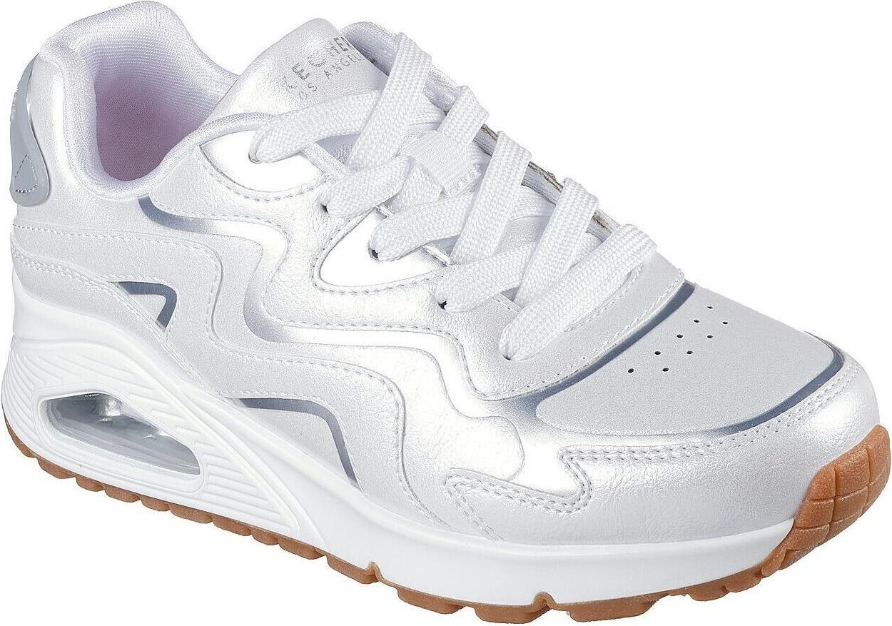 Skechers UNO GEN1 Sneaker Schnürschuh mit Memory Foam, Größenschablone zum Download (silber/weiß)