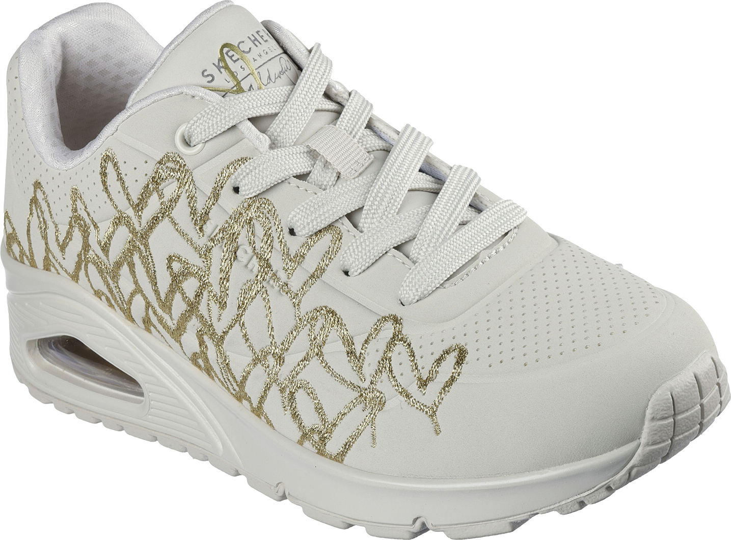 Ob für den Alltag, einen Stadtbummel oder den casual Look – der Skechers UNO-GOLDEN HEART kombiniert trendiges Design mit höchstem Komfort und feiert die Liebe zu Fashion und Gold.