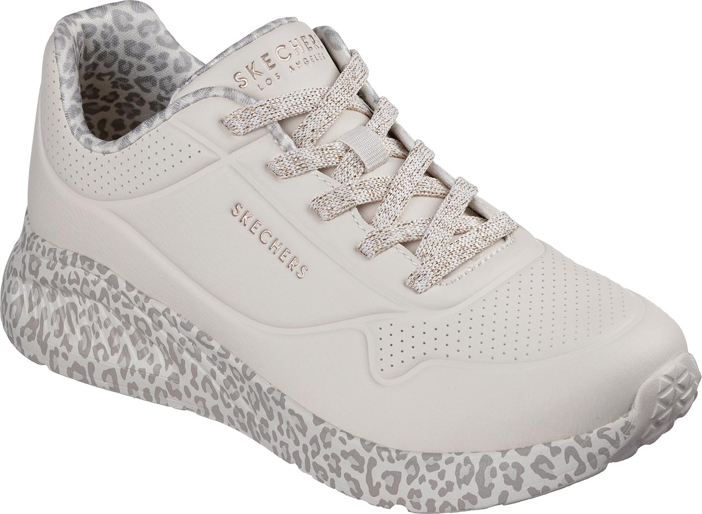 Der Skechers UNO Lite – Subtle Prints Damen-Sneaker kombiniert femininen Stil, modische Details und hohen Tragekomfort. +