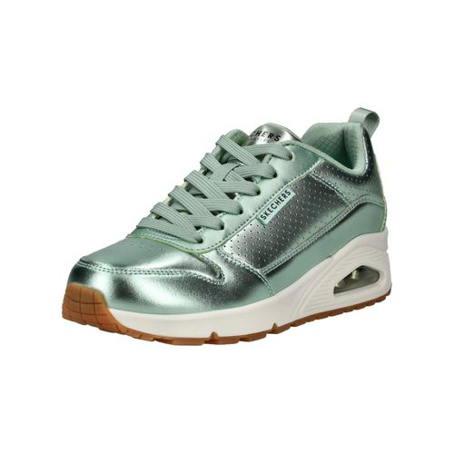Skechers UNO-METALLIXS Sneaker, Keilsneaker, Plateausneaker, Schnürschuh, Halbschuh im Metallic-Look (grün)