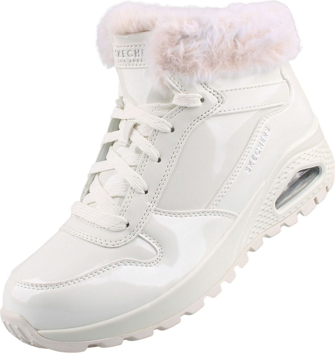 Dieser modische Schnürschuh hat ein Obermaterial aus synthetischem Lackleder mit Kunstfellbesatz, eine Skechers Air-Cooled Memory Foam Einlegesohle und eine sichtbare Skech-Air Airbag-Zwischensohle.Obermaterial: Kunststoff (Synthetik) Innenmaterial: TextilInnensohle: TextilSohle: Kunststoff (Synthetik)Fütterung der Schuhe: warm gefüttert