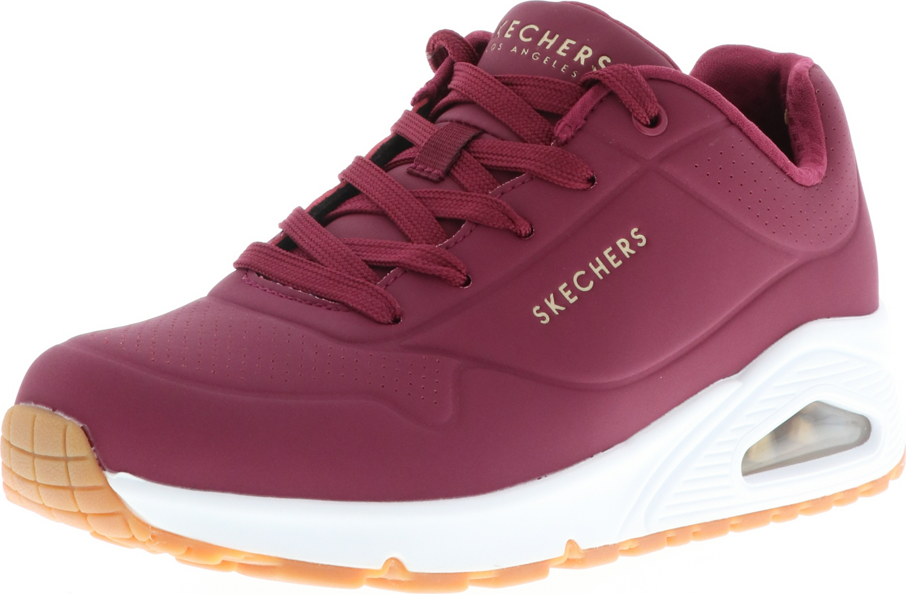 Entdecken Sie die Skechers Uno Stand On Air Sneakers Low Sneaker - der perfekte Schuh für ein bequemes und stilvolles Trageerlebnis. Diese sneaker sind in einem kräftigen dunkelrot gehalten und bestehen aus flexiblem PU-Material mit einem flachen Absatz. +