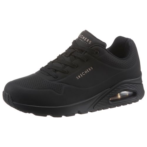 Skechers Uno - Stand on Air Wedgesneaker Freizeitschuh, Halbschuh, Schnürschuh mit feiner Perforation (schwarz)