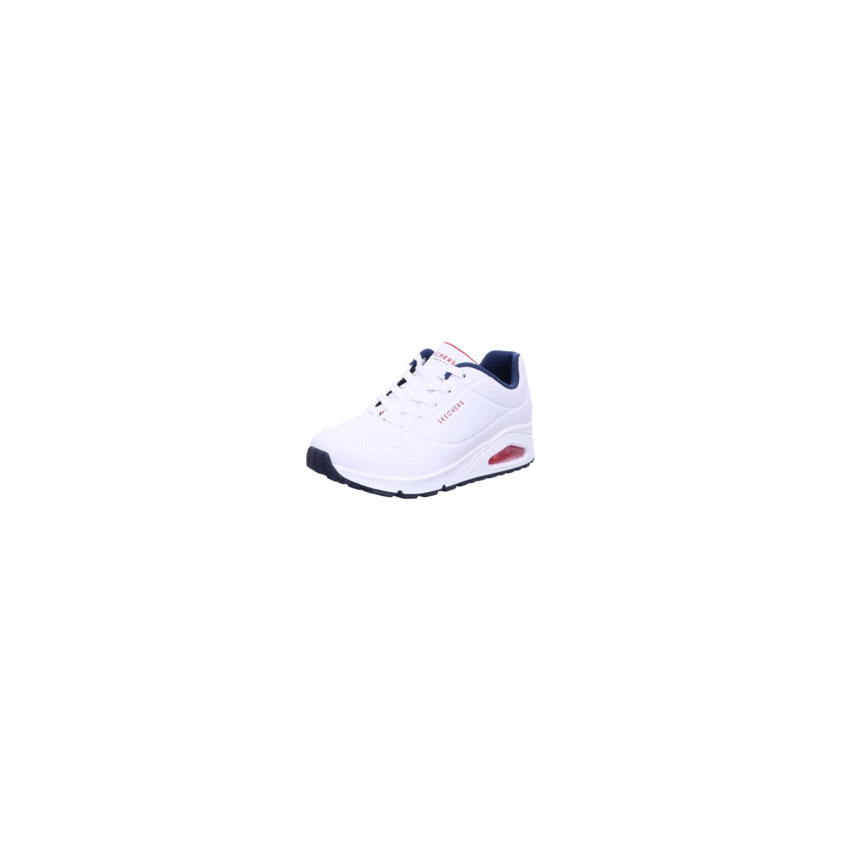 Der Skechers "UNO STAND ON AIR" Schnürschuh in Weiß vereint den klassischen Style eines Sneakers mit modernem Komfort und bietet somit das perfekte Schuhwerk für den Alltag. Das Obermaterial aus Synthetik mit Lederstruktur und Ziernähten sowie den Perforations-Akzenten verleiht diesem Schuh einen stilvollen Look. Die sichtbare Zwischensohle mit Luftkissen-Dämpfung sorgt für eine angenehme Dämpfung und ein leichtes Tragegefühl. +