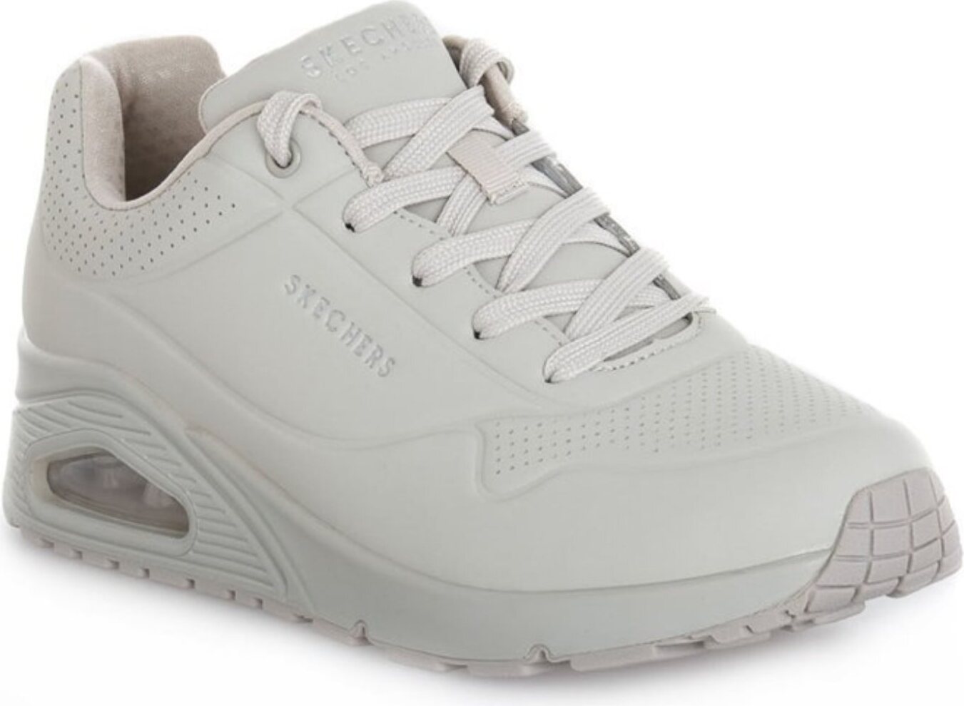 Erlebe den ultimativen Komfort mit den Skechers »UNO STAND ON AIR« Wedgesneakern! Dieser sportliche Schuh in sommerlichem Offwhite ist aus hochwertigem Lederimitat gefertigt und das weich gepolsterte Innenfutter aus Textil sorgt für ein angenehmes Tragegefühl den ganzen Tag über. Der Keilabsatz von ca. 4,5 cm verpasst deinem Outfit den perfekten Boost und die runde Schuhspitze rundet den Look optimal ab. +
