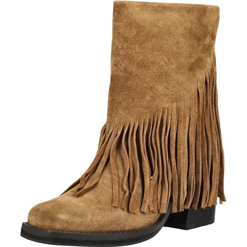 Gefertigt aus hochwertigem, weichem Wildleder, überzeugen sie mit ihrer weichen Haptik und dem natürlichen Look. Das auffällige Fransendetail rund um den Schaft verleiht den Boots Bewegung und einen verspielten Charakter.