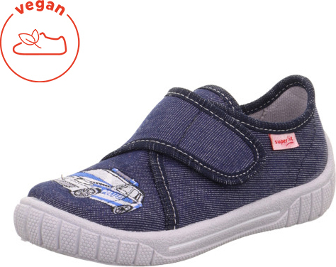 Superfit BILL WMS: mittel Hausschuh Kindergartenschuh mit Klettverschluss, Größenschablone zum Download (blau)