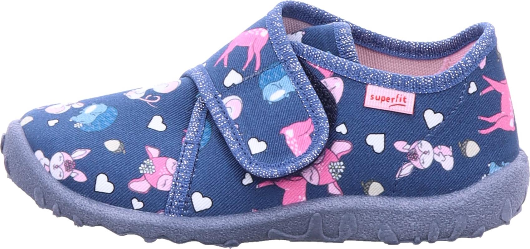 Dieser süße Kinder Hausschuh Spotty von Superfit begeistert kleine Mädchen mit seinem Print mit Waldtieren, wie einem Igel und einem Rehkitz, in fröhlichen Farben. +