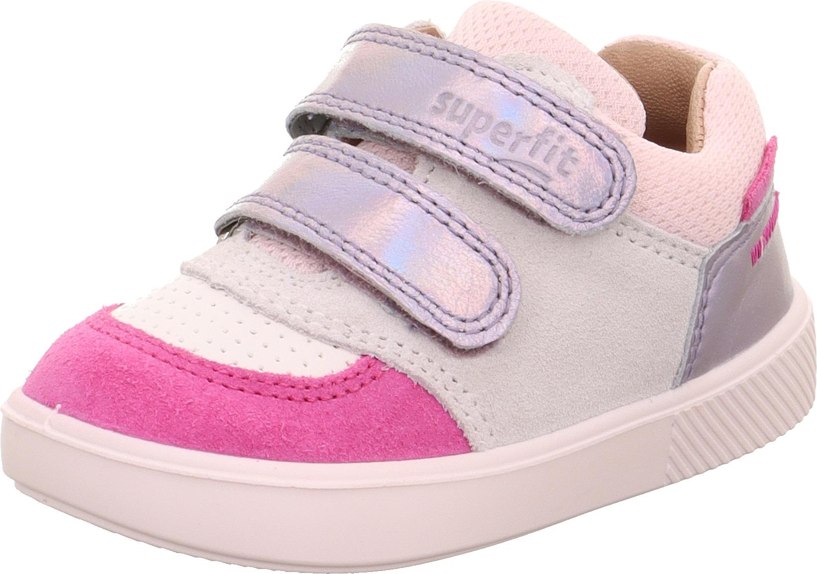 Klettschuh SUPERFIT "SUPIES WMS: mittel", Kinder, Gr. 23, flieder, rosa, Nappaleder, Polyester, Veloursleder, mehrfarbig, Schuhe Klettschuh, Sneaker, Freizeitschuh im Retro Look, Größenschablone zum Download