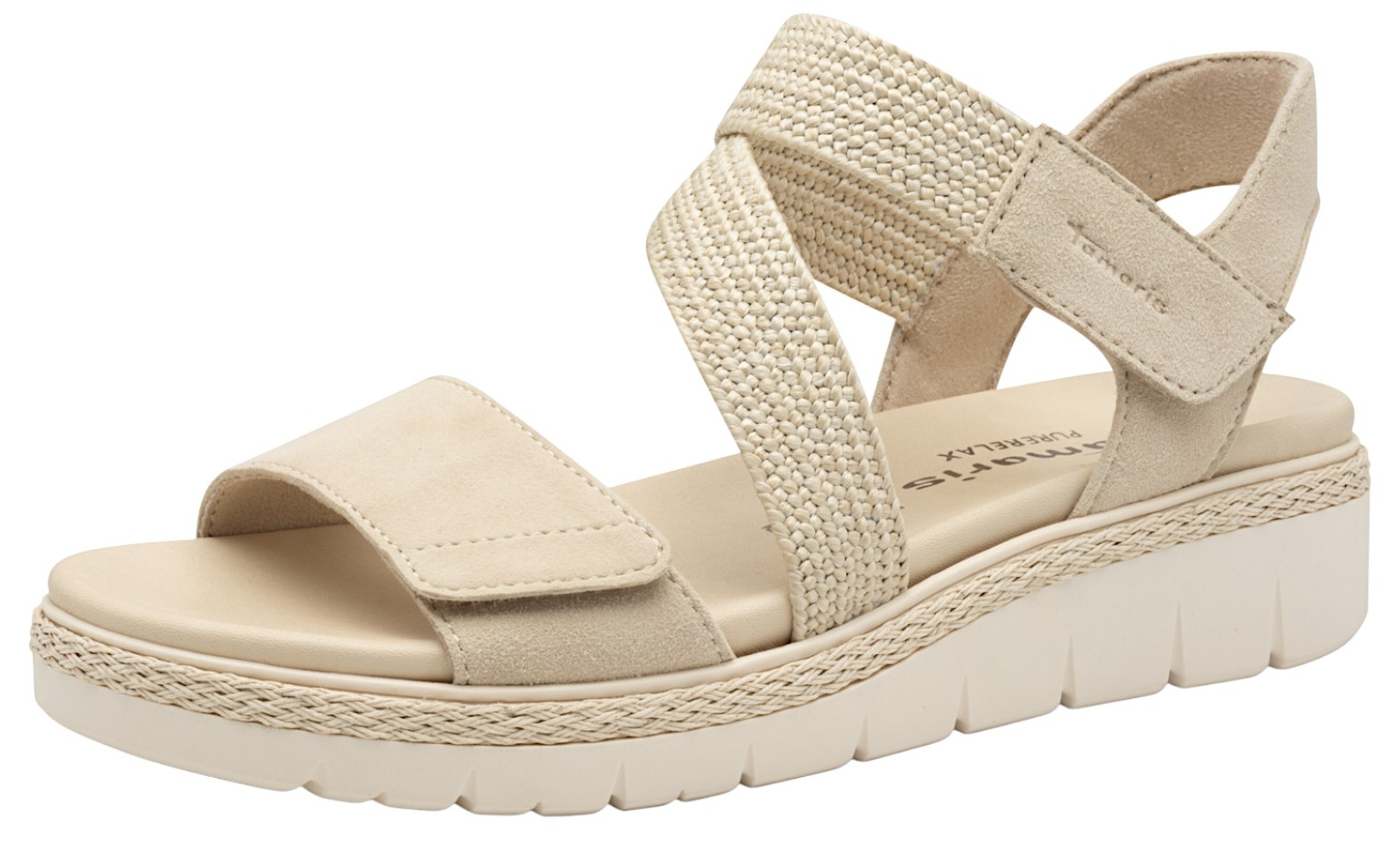 Erleben Sie den perfekten Mix aus Komfort und trendigem Design mit der Tamaris Keilsandalette in edlem Creme-Ton. Dieser vielseitige Sommerschuh eignet sich ideal für entspannte Tage am Strand, aufregende Stadtbummel oder gesellige Gartenpartys. +