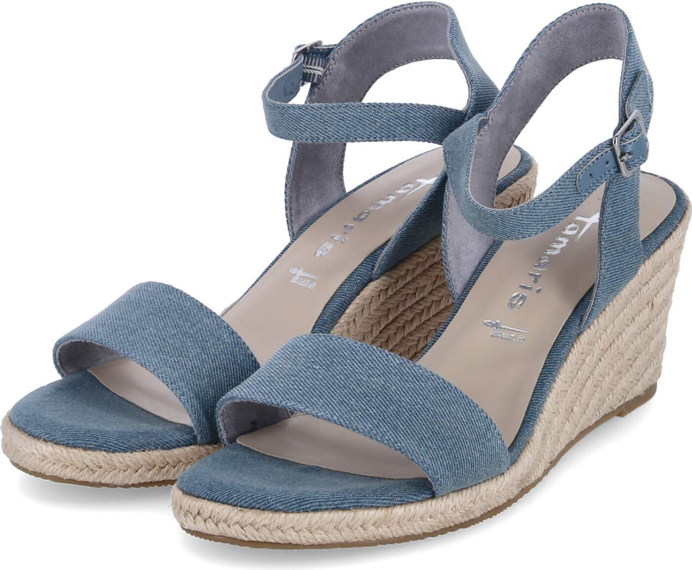 Schuhtyp:Sandalette, KeilsandaletteFarbe:Denim (Blau)Obermaterial:Textil (Microvelour)Innenfutter:TextilDecksohle:Textil (Touch It) Laufsohle:Synthetik Keilhöhe:60 mm