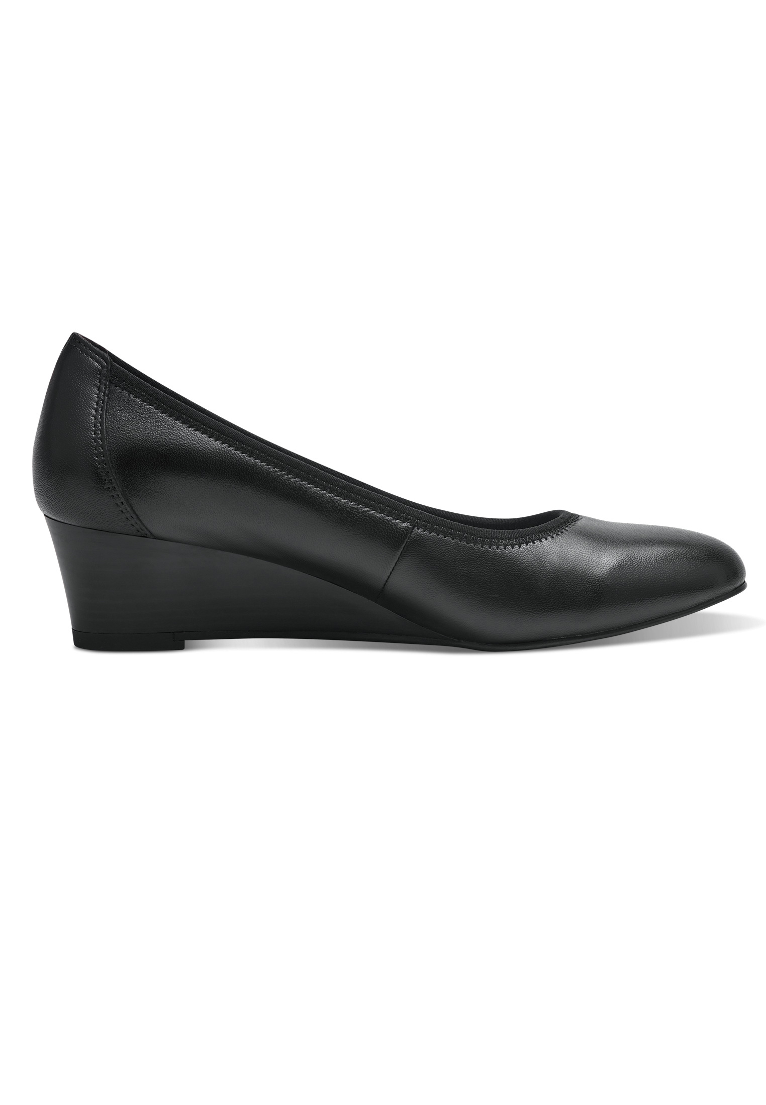 Entdecken Sie zeitlose Eleganz und unvergleichlichen Komfort mit den Tamaris Keilpumps aus hochwertigem, echtem Glattleder in klassischem Schwarz. Mit einer Absatzhöhe von 4 cm sind diese Pumps der ideale Begleiter für jede Gelegenheit – sei es im Büro oder beim besonderen Anlass. +