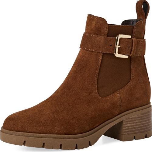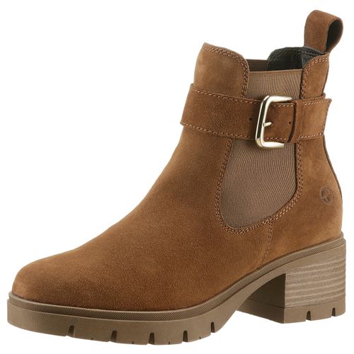 tamaris Chelseaboots, Blockabsatz, Businessmode, Stiefelette mit Zierschnalle (braun)