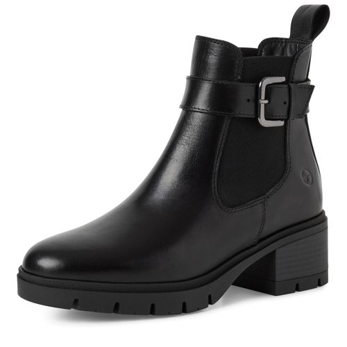 tamaris Chelseaboots, Blockabsatz, Stiefelette, Schlupfboots mit Ziernschnalle (schwarz)