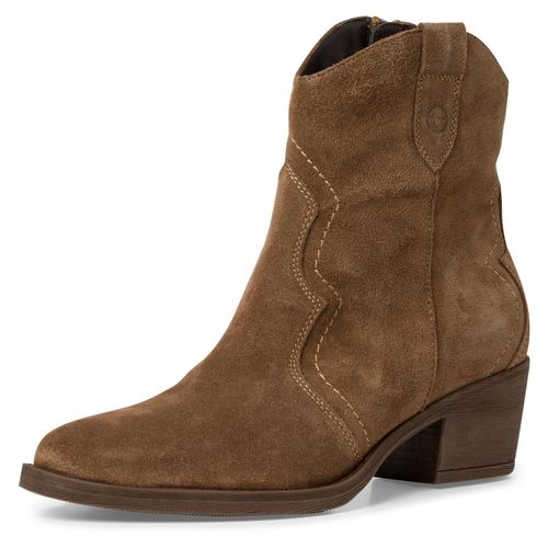 tamaris Cowboy Stiefelette, Blockabsatz, Festival, Western-Boots mit modischen Kontrastnähten (braun)