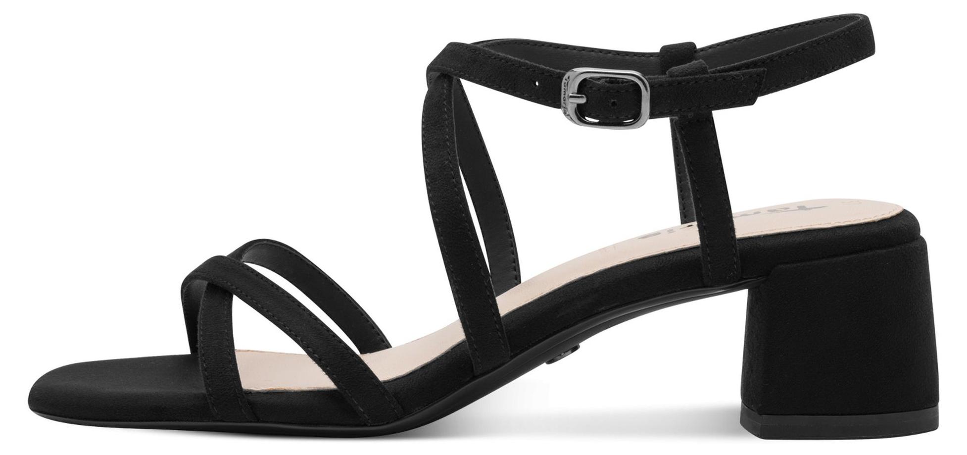 Tamaris Damen Sandale Obermaterial: Leder Decksohle: Kunststoff Innenfutter: Textil Sohle: Kunststoff Verschluss: Schnalle Absatzhöhe: ca. +