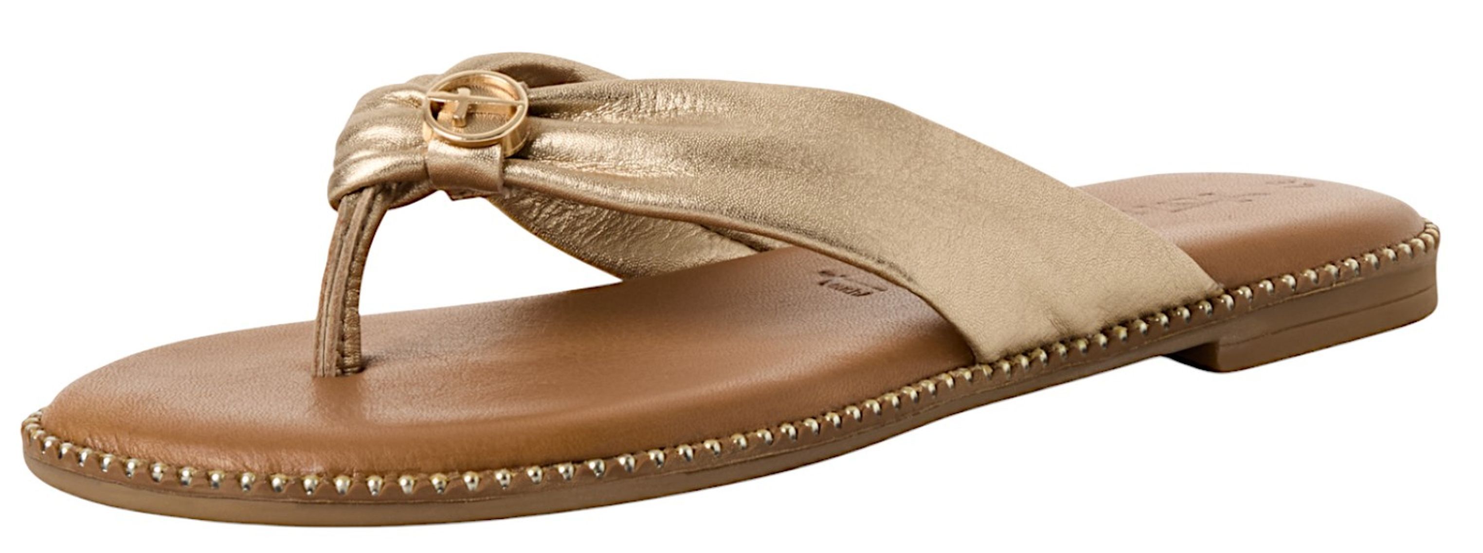 tamaris Dianette, Zehentrenner, Sommerschuh mit glänzenden Nieten am Sohlenrand (gold)