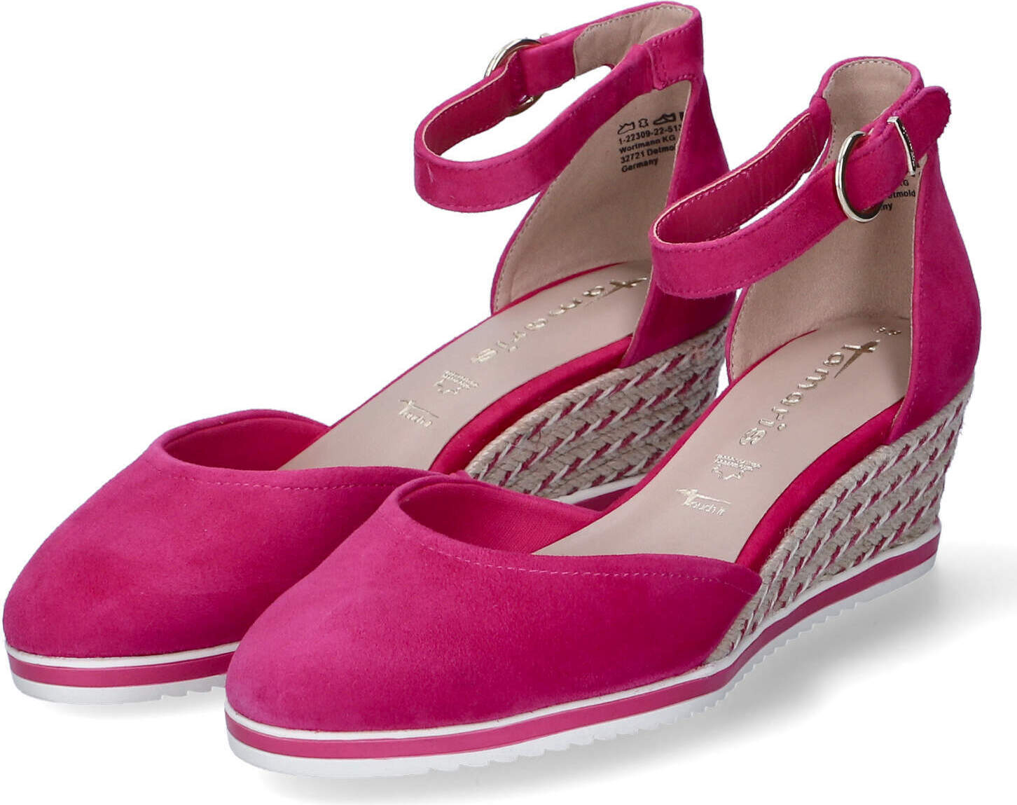 Die gepolsterte Synthetik-Innensohle mit der ",Touch It",-Technologie bietet zusätzlichen Komfort und unterstützt die natürliche Fußform. Dank dem Keilabsatz ist eine größere Absatzhöhe möglich, ohne den Komfort und die Stabilität zu beeinträchtigen.