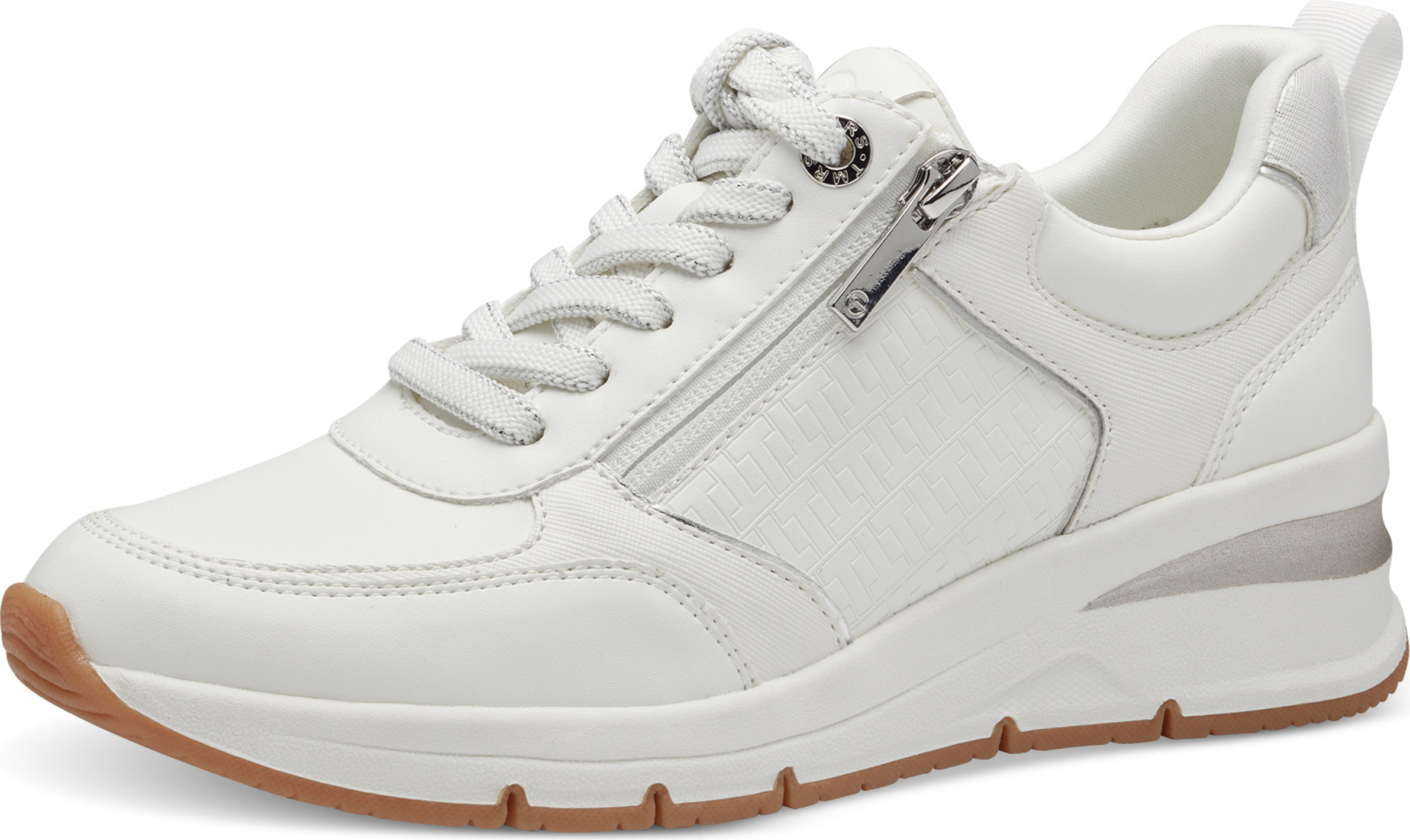tamaris Keilsneaker, Freizeitschuh, Halbschuh, Schnürschuh mit Außenreißverschluss (silber/weiß)