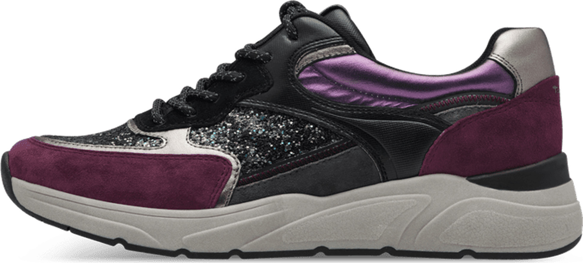 Entdecke den auffälligen Keilsneaker von Tamaris, der mit seinem funkelnden Glitzerbesatz alle Blicke auf sich zieht! Dieser modische Sneaker vereint Komfort und Stil in perfekter Harmonie. +