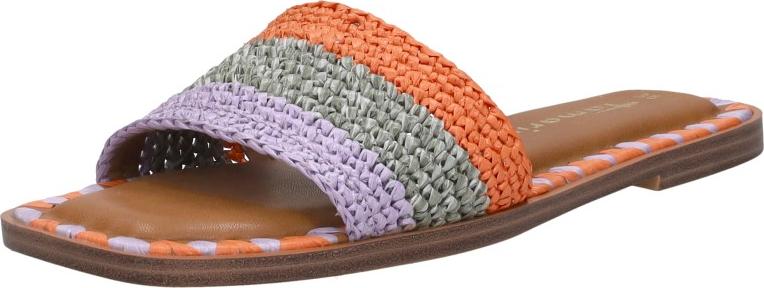 tamaris Pantolette, Blockabsatz, Sommerschuh, Strandschuh, zweifarbige Bast-Umrandung (orange/grün)