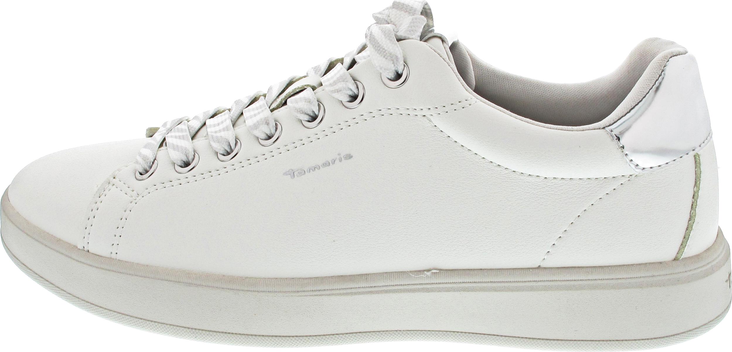 tamaris Plateausneaker, Freizeitschuh, Halbschuh, Schnürer in veganer Verarbeitung (silber/weiß)