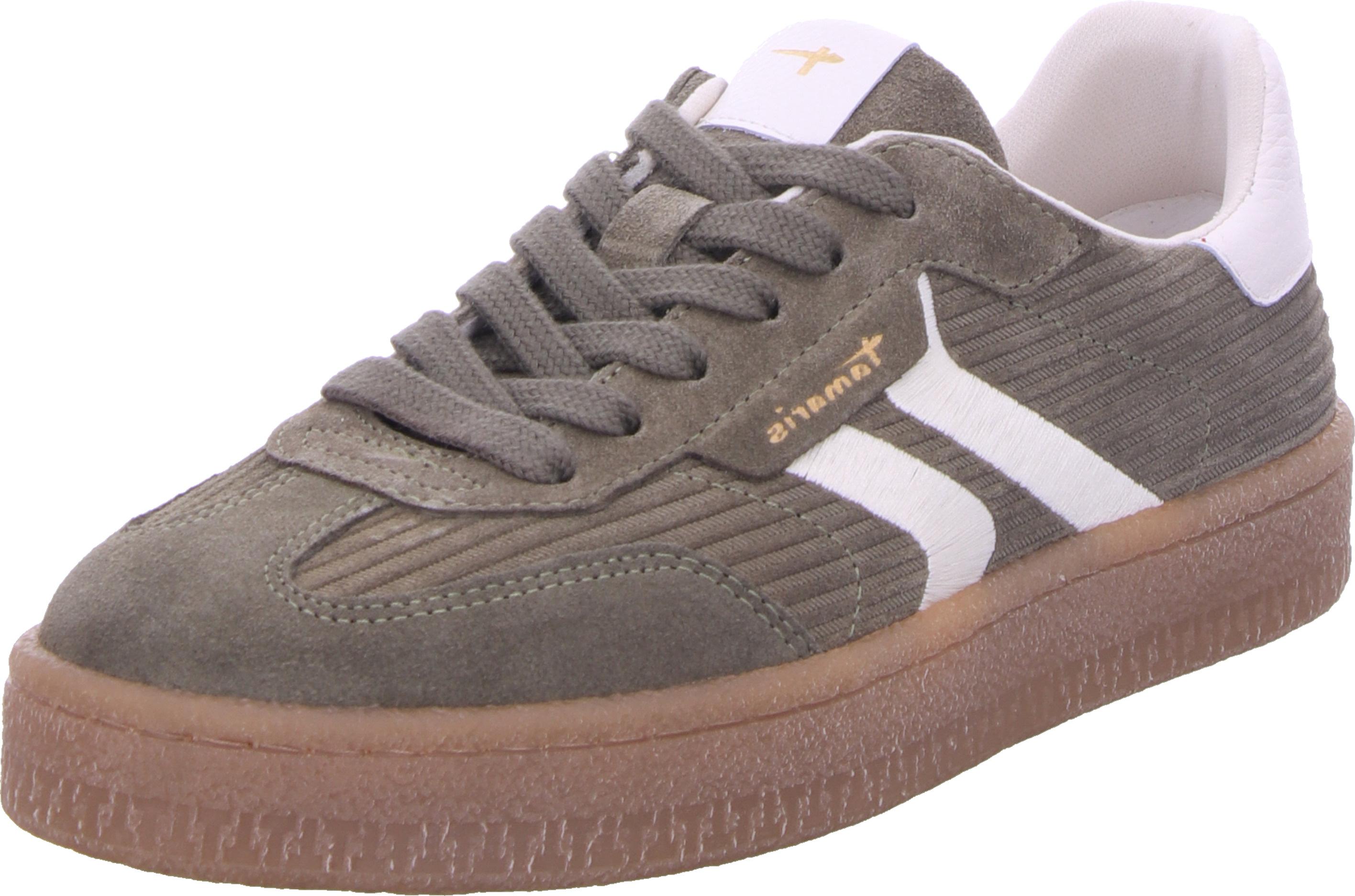 tamaris Plateausneaker, Freizeitschuh, Halbschuh, Schnürschuh mit gepolstertem Schaftrand (grün/weiß)