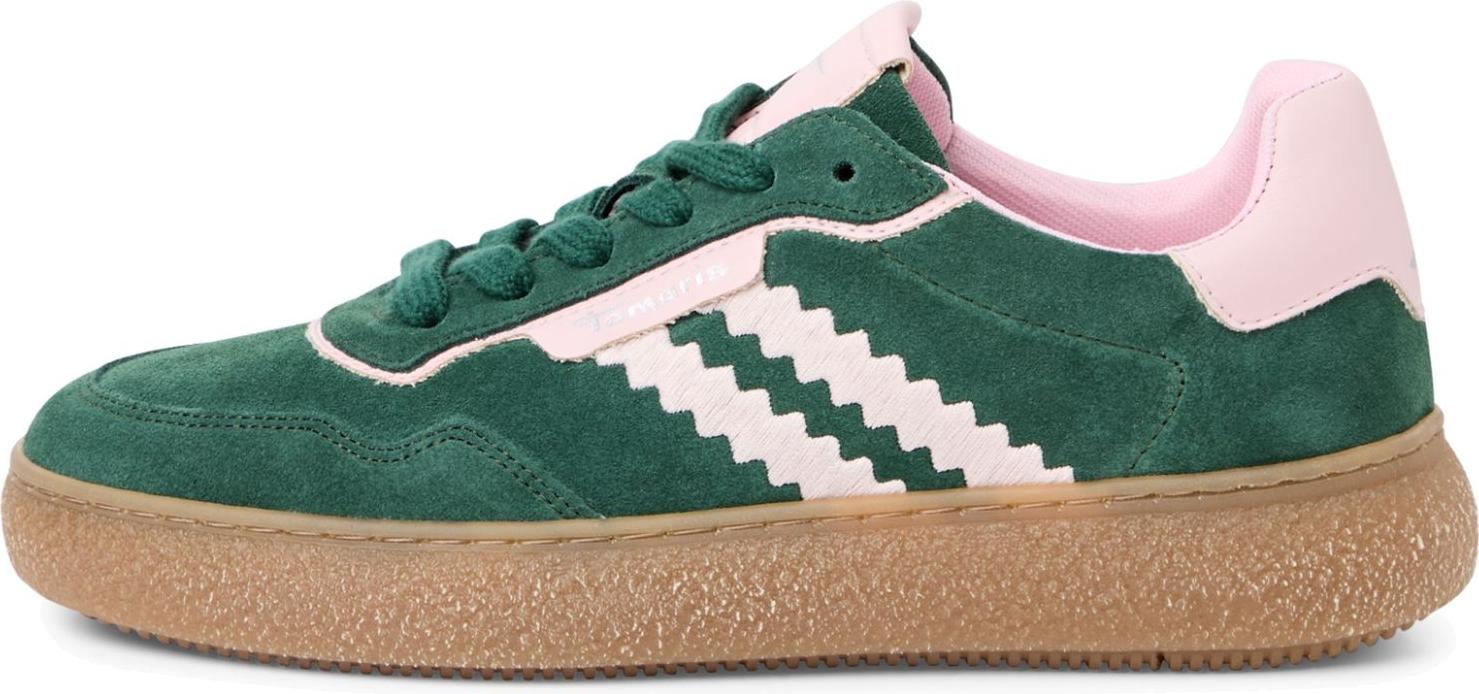 tamaris Plateausneaker, Freizeitschuh, Halbschuh, Schnürschuh mit Kontrastbesatz (grün)