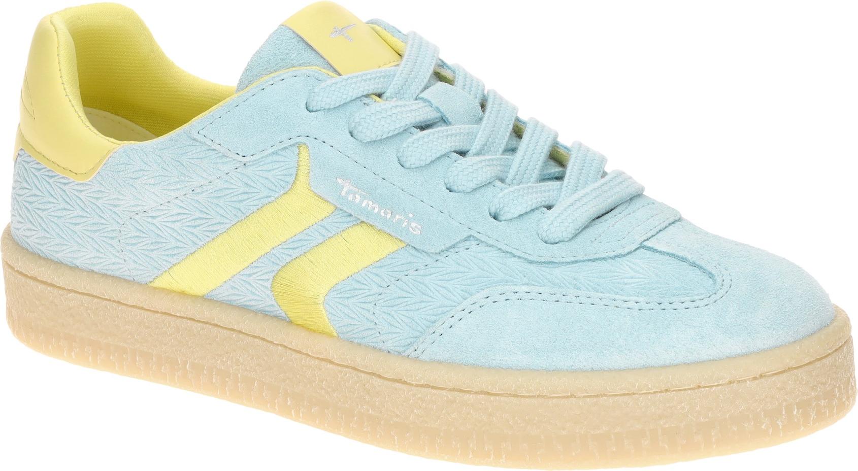tamaris Plateausneaker, Schnürschuh, Halbschuh, Freizeitschuh mit gepolstertem Schaftrand (blau/gelb)