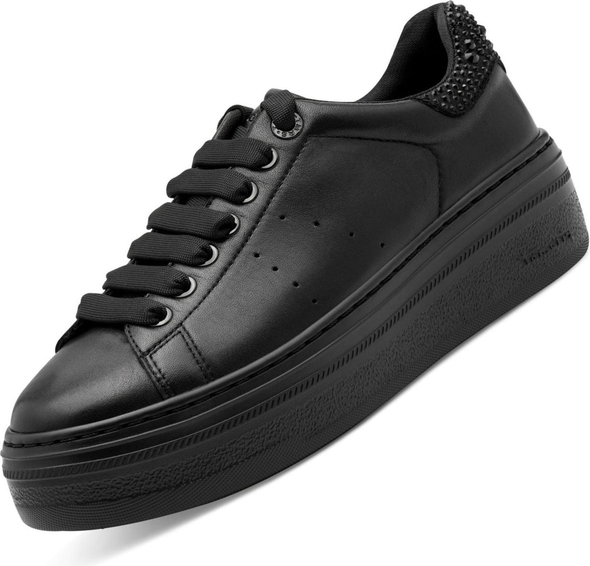 tamaris Plateausneaker, Schnürschuh, Halbschuh mit auffälligen Schmucksteinen an der Ferse (schwarz)