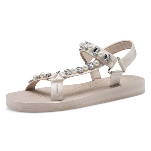 tamaris Riemchensandale, Keilabsatz, Plateau, Sandalette, Sommerschuh mit Schmucksteinen (beige)
