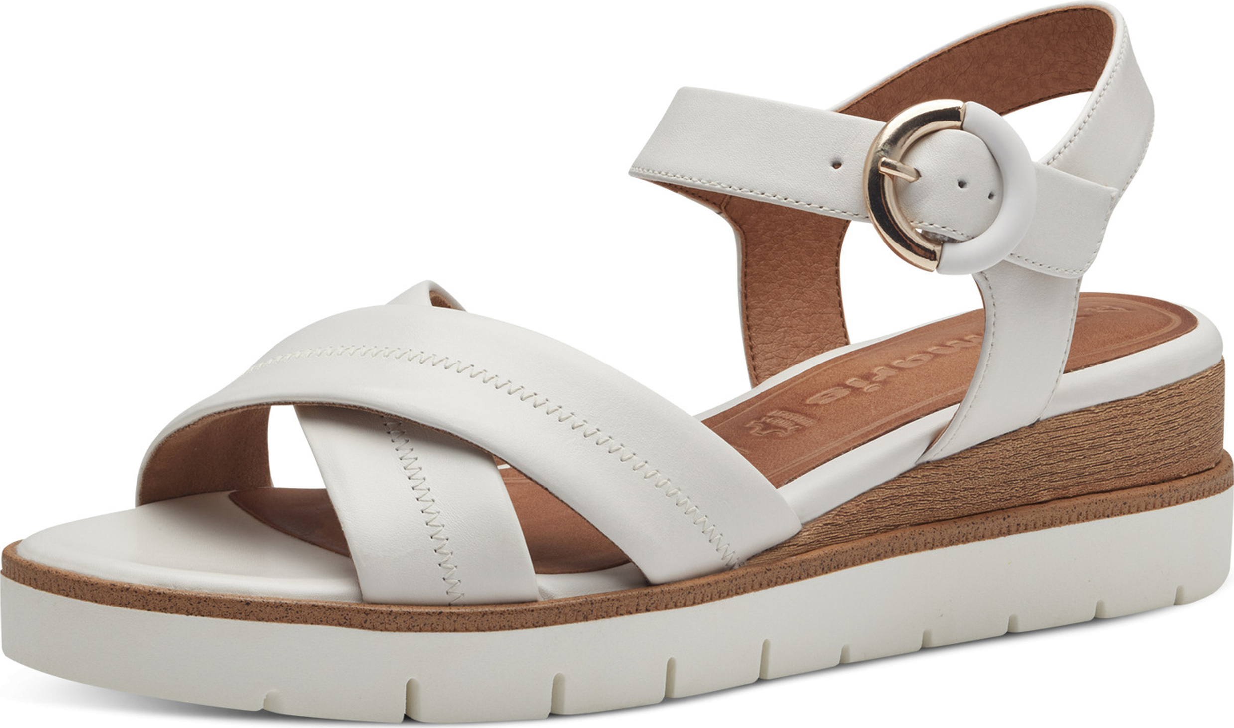 tamaris Keilsandalette, Sommerschuh, Riemchensandale mit Ziernähten (weiß)