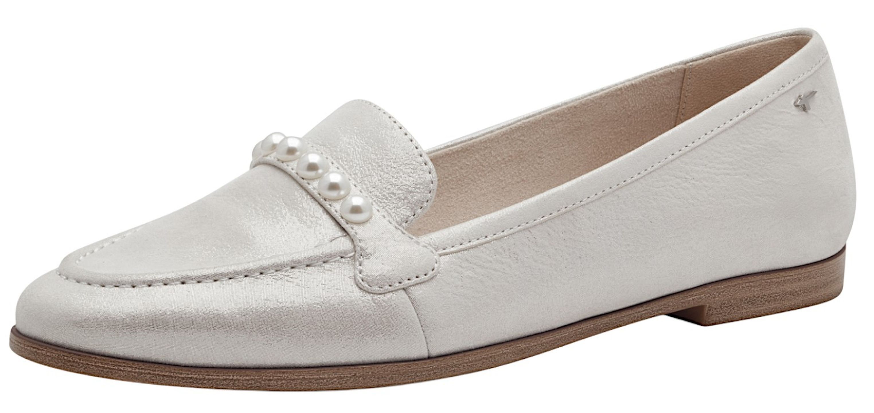 Gefertigt aus hochwertigem Leder und verziert mit anmutigen Perlenapplikationen, vereinen sie klassischen Chic mit modernem Komfort. Die flache, stabile Sohle sorgt für ein angenehmes Tragegefühl, egal ob im Büro oder beim Treffen mit Freunden.
