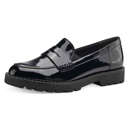 Mit den Tamaris Slippern in schwarzem Lacklederimitat bist du immer stilvoll unterwegs. Die schmale Form sorgt für eine elegante Passform, während der Zierriegel und der klassische Schnitt dem Schuh das gewisse Etwas verleihen. +