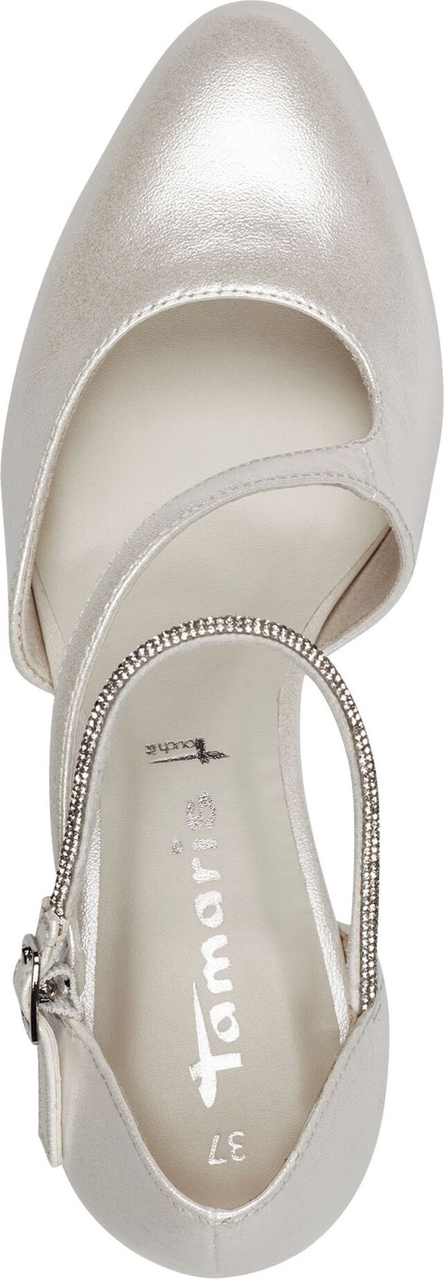 Tamaris Damen Spangenpumps in Weiß sind die perfekte Wahl für festliche Anlässe, insbesondere als Brautschuhe. +