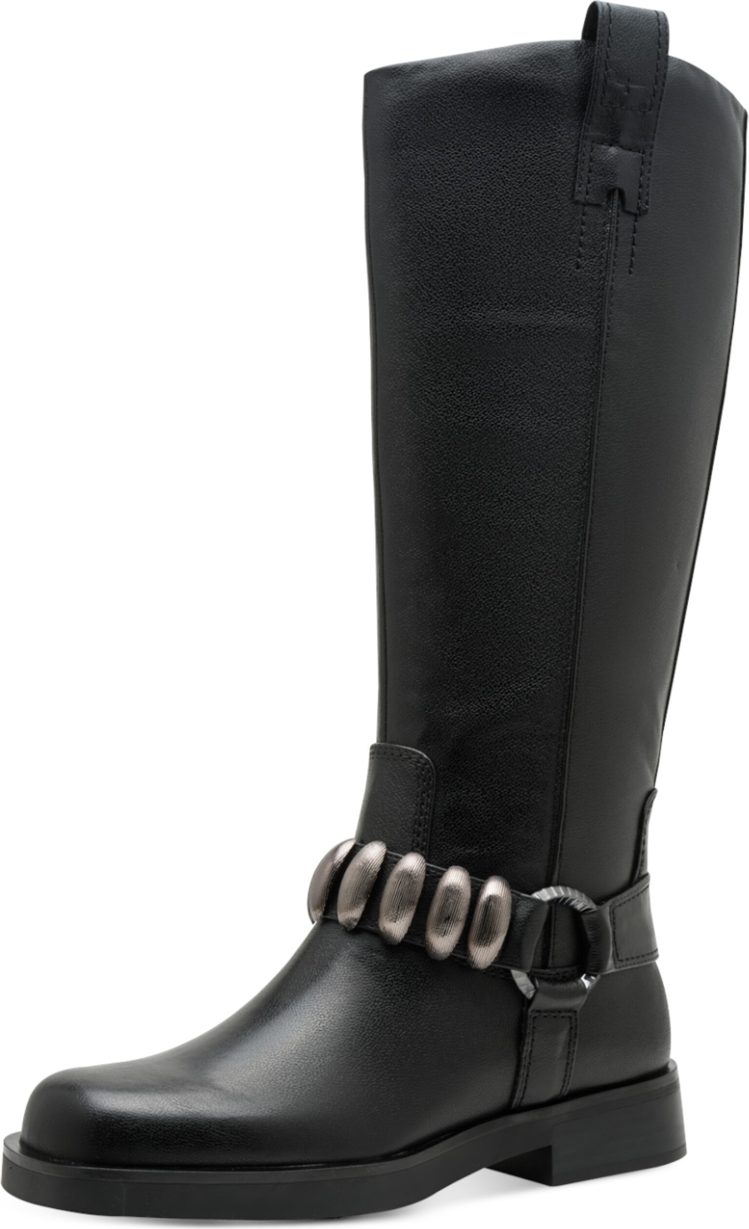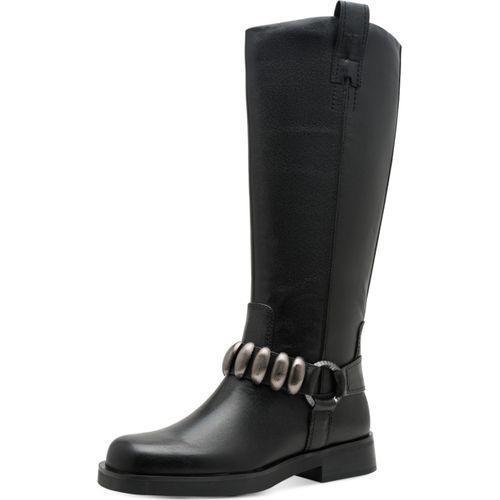 tamaris Stiefel, Blockabsatz, Langschaftstiefel mit Schmuckelementen, im Biker-Look (schwarz)