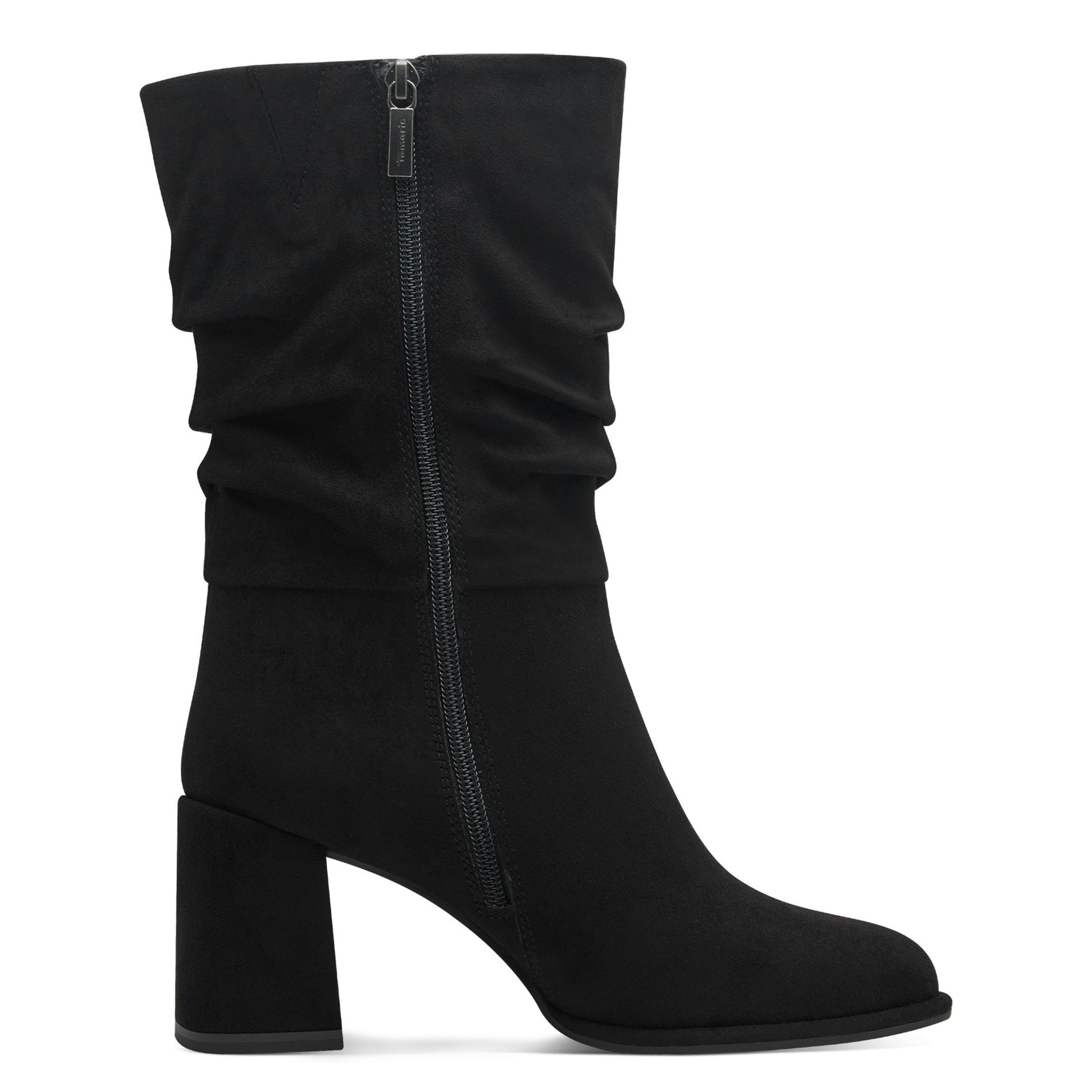 Der moderne Blockabsatz und das raffinierte Falten-Design setzen deine Individualität gekonnt in Szene, während das Touchit-Fußbett angenehm weich jede Bewegung begleitet. Der hohe, geraffte Schaft hält dich an kühlen Tagen warm und rundet deinen Look stilvoll ab – perfekt für deinen urbanen Wintermoment.