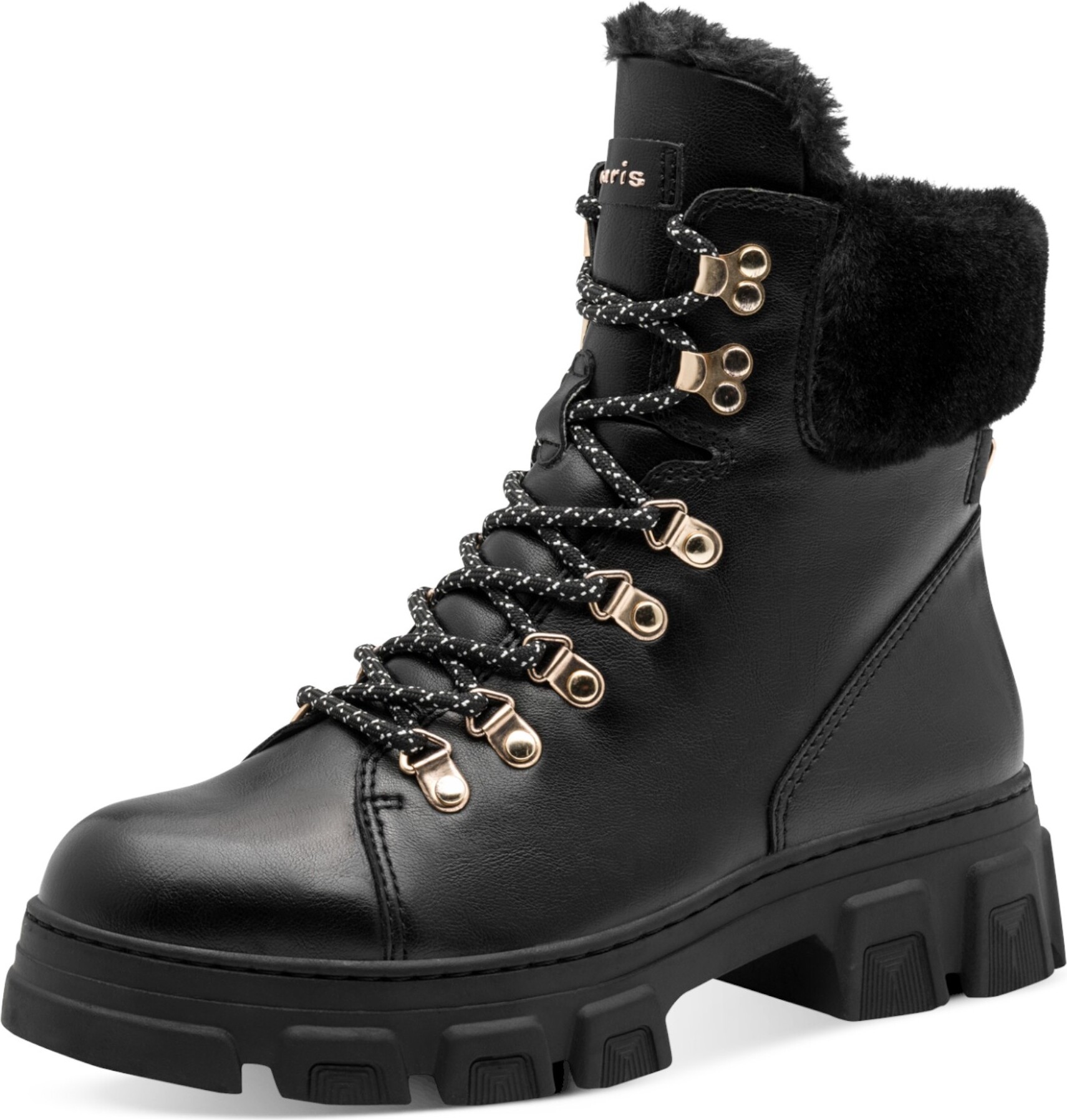 Spüre pure Abenteuerlust bei jedem Schritt – diese sportlichen Tamaris Lace Boots mit gefüttertem Schaft, kuscheligem Fellbesatz und robuster Sohle begleiten dich zuverlässig durch Herbst, Winter und urbane Abenteuer. +