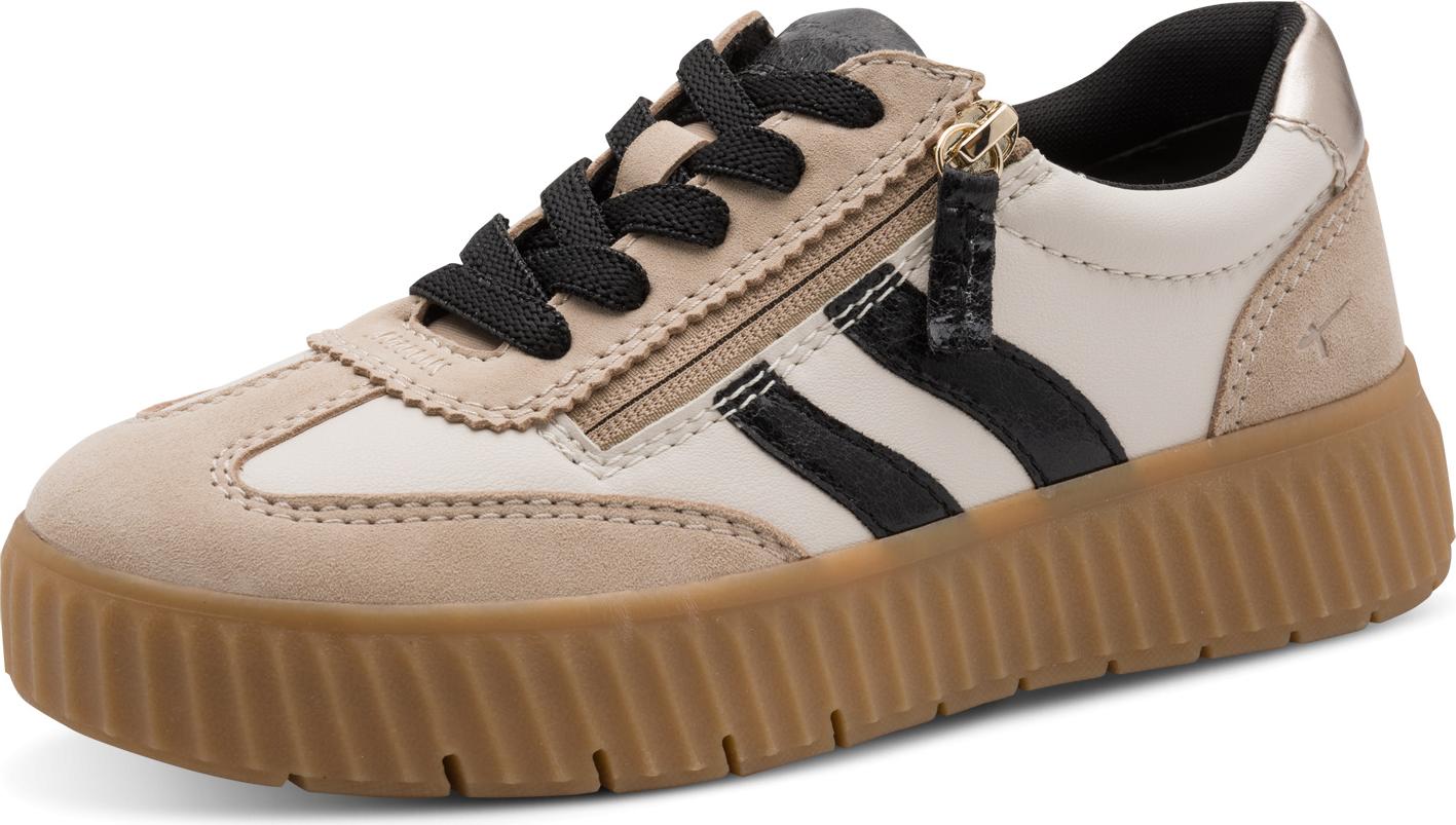 tamaris WIDE FIT comfortFit, Removable Sock aus Leder Sneaker comfortFit (beige/schwarz)