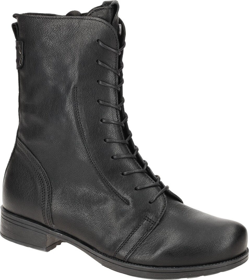 Marke: ThinkModell-Nr.: 3-000154-0000Modellname: DENK!Art: Damen Stiefeletten - bequeme StiefeletteFarbe: schwarz (schwarz)Obermaterial: Echtleder - Glattleder (Goat)Innenfutter: Textil - weich gepolstertInnensohle: Textil FußbettWechselfußbett: herausnehmbare InnensohleLaufsohle: GummisohleVerschluss: Schnürung und ReißverschlussAbsatz: BlockabsatzAbsatzhöhe: kleiner Absatz, ca. +