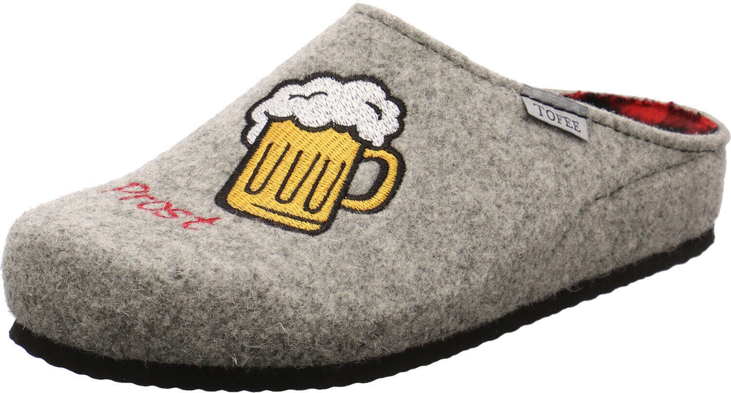 Dieser tolle Herren Hausschuh von Tofee ist ein perfekter Begleiter für entspannte Stunden in deinem Zuhause.Als Eyecatcher auf dem robusten und langlebigen Obermaterial aus ökologischem Naturwollfilz in Grau dient der farblich abgesetzte Bierkrug mit dem unterlegten Schriftzug Prost, der dem Schuh das gewisse Etwas verleiht. +