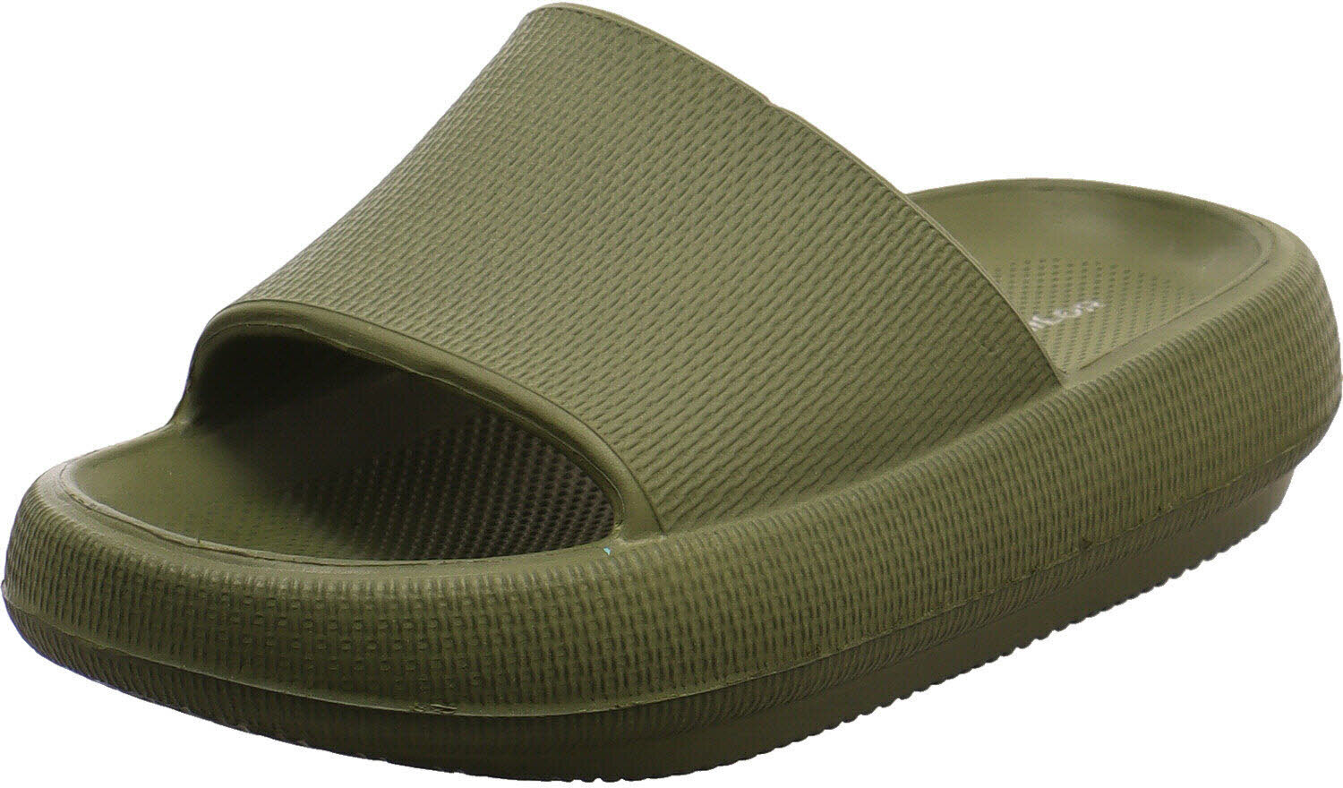 Voll im Trend liegst du mit dieser tollen Damen Pantolette in Grün von Tom Tailor.Der Schuh ist bestens geeignet für das volle Programm vor und nach dem Training oder als Styling Highlight zu deinem Sommer Outfit.Das weiche Obermaterial dieser Pantolette ist besonders angenehm und vor allem praktisch.Der Schuh trocknet schnell und ist somit auch für den Einsatz im Schwimmbad bestens geeignet. +